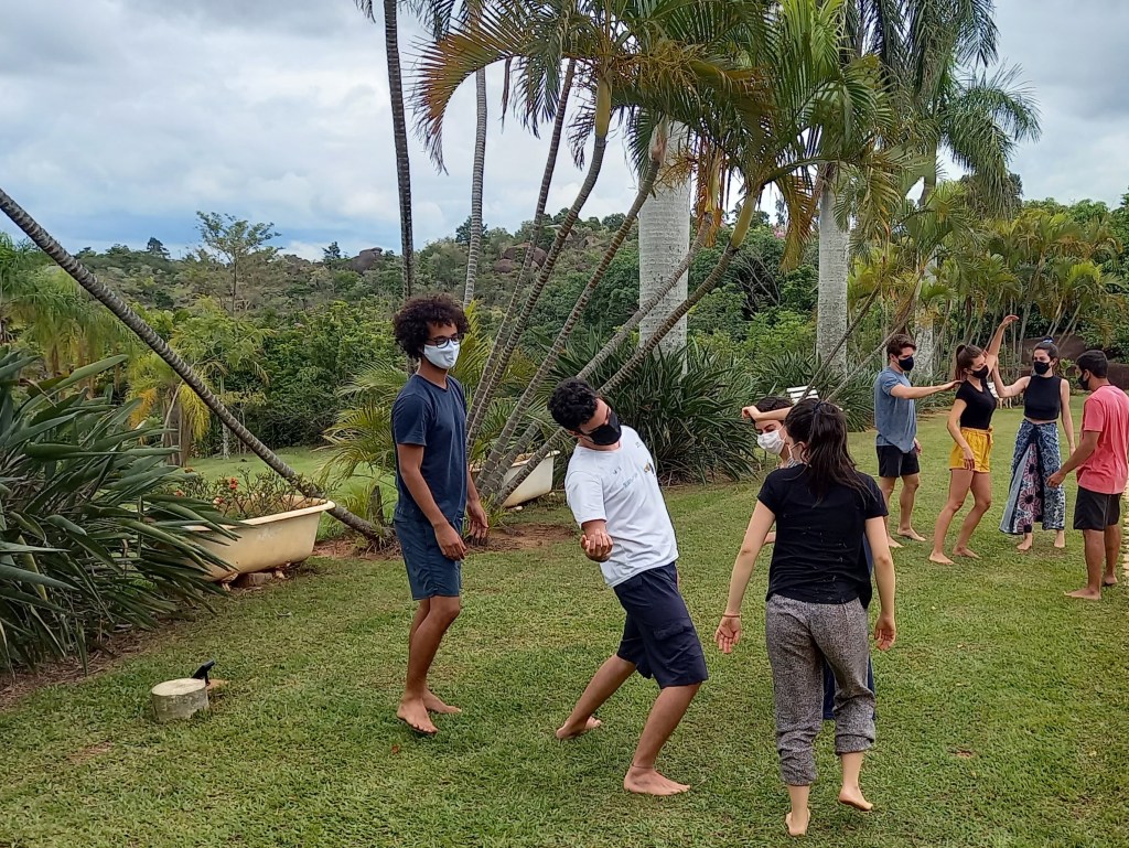 > interação por meio de jogos de improviso e dinâmicas de movimento, estimulando a potência das relações vivas